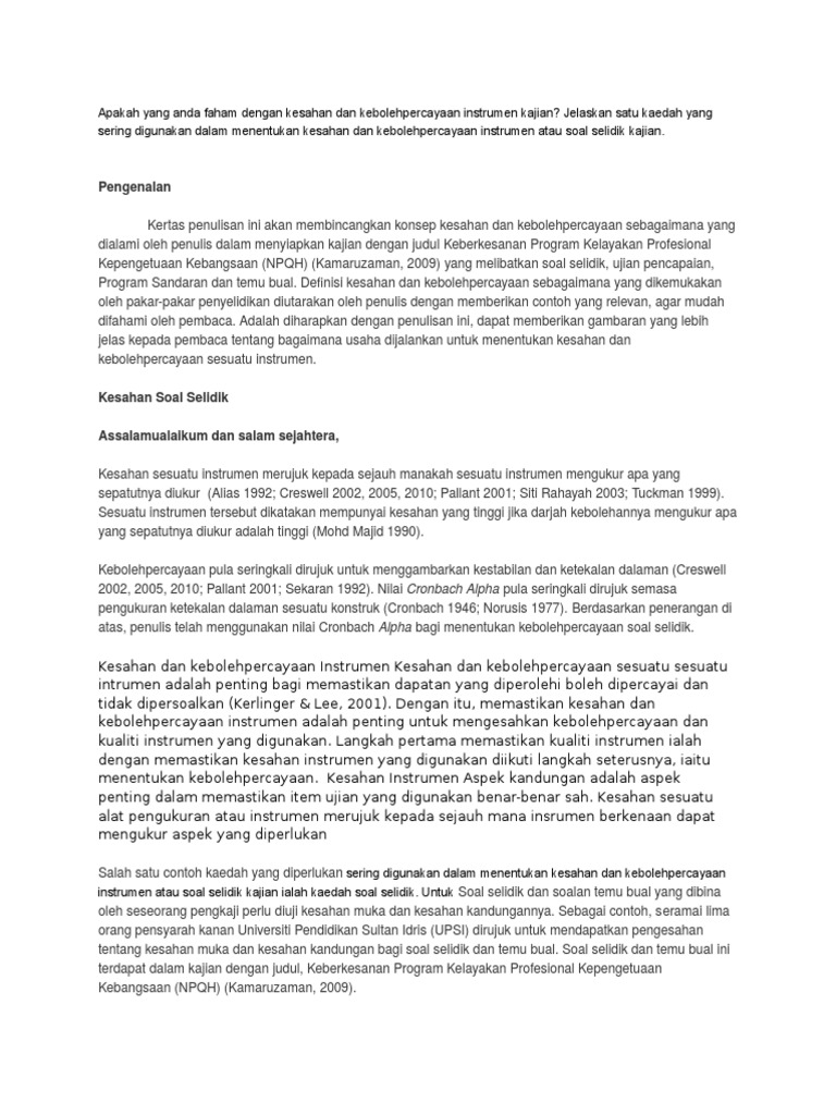 Doc Kesahan Dan Kebolehpercayaan Instrumen Kajian Sitti Saidah Academia Edu